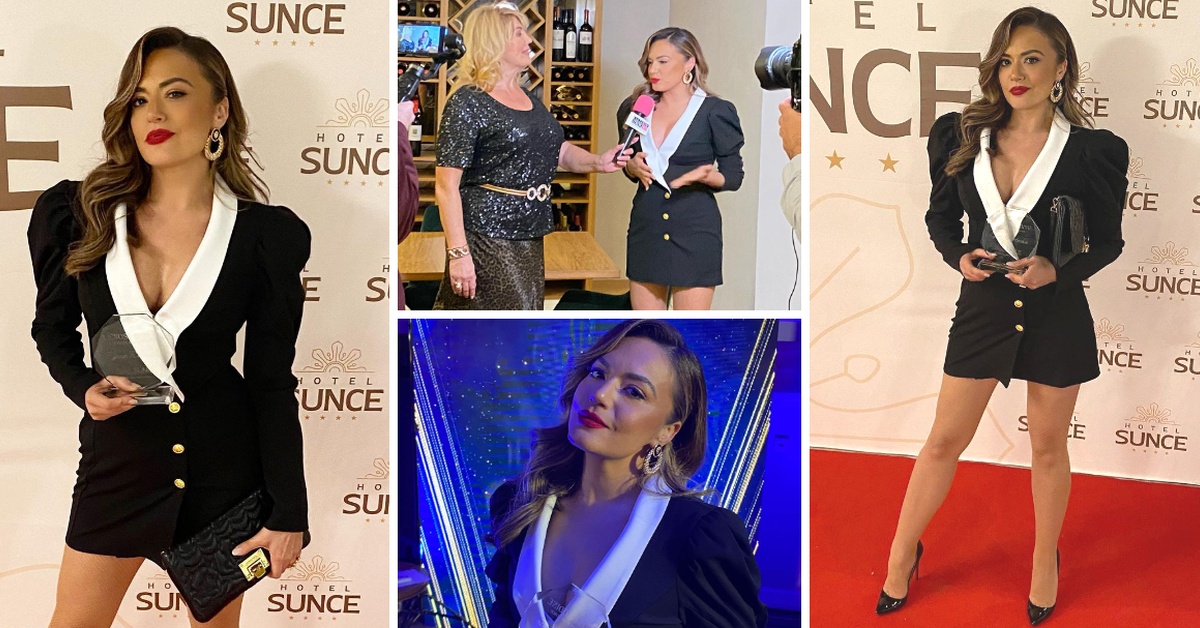 Елена Ристеска во мини сако-фустан ја прими наградата „Личност на годината во светот на поп музиката“ во Србија
