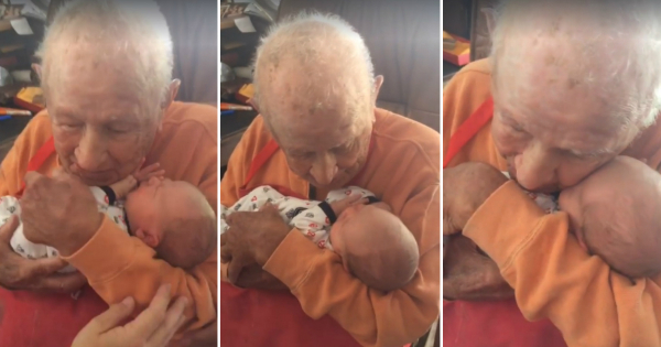 Во него, прадедото за првпат го среќава новородениот Истон, кој во тој момент има само 5 дена, и добива можност да го подржи в раце. Среќата на лицето на емотивниот маж и прегратките кои му ги подарува на малото бебенце, нема да ве остават рамнодушни.