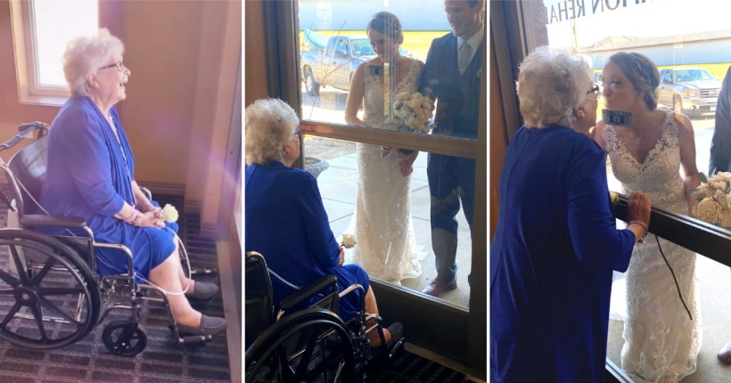 Емотивен момент: Младенци пред свадбата ја посетија бабата на невестата која е во изолација во старечки дом
