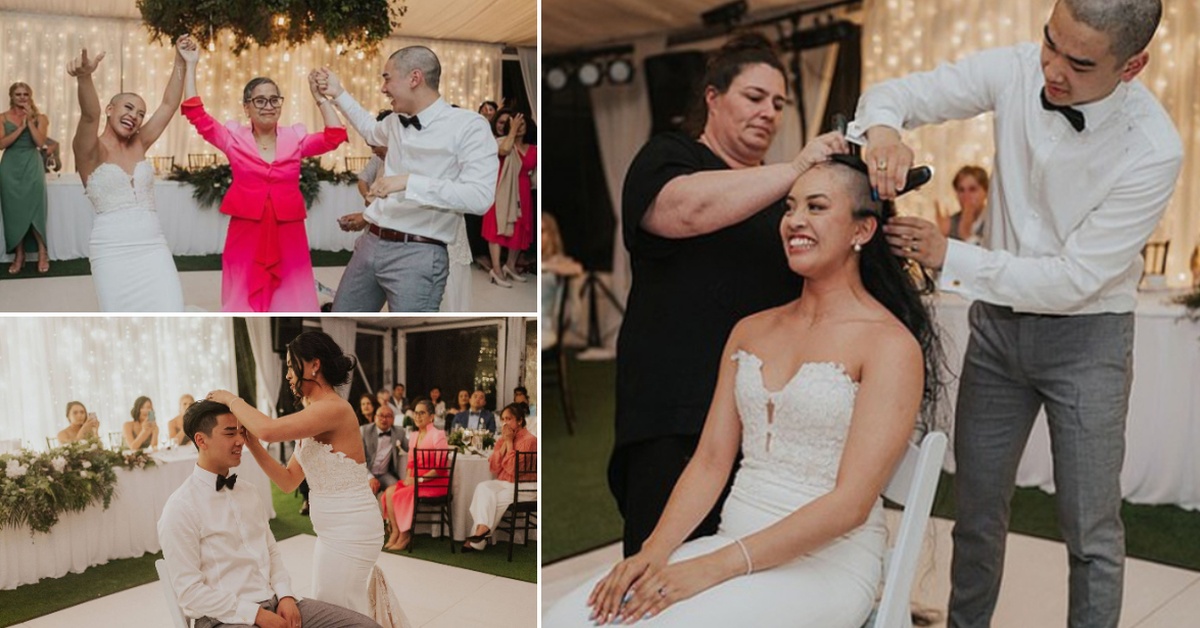 Емотивен свадбен момент: Младенци си ги бричат главите за поддршка на мајката на невестата болна од рак