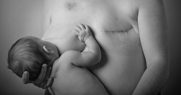 Емотивни фотографии од мајка која го дои своето бебе со една града откако ја изгуби другата поради рак