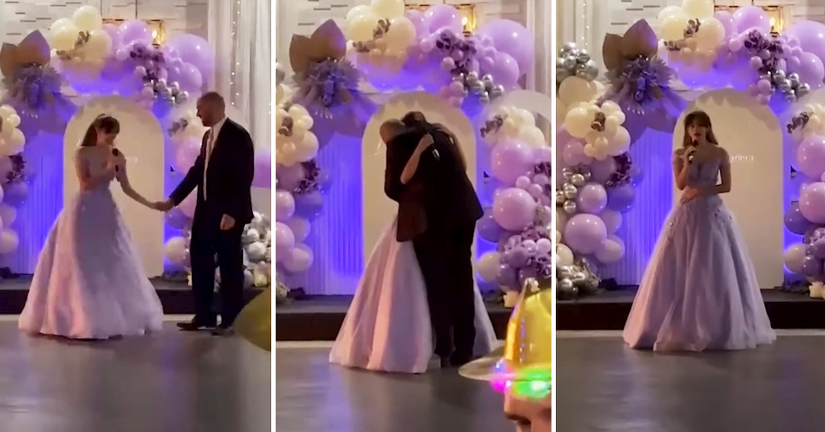 @humankind This young woman gets up at her own quinceañera to share a special memory...and then surprised the crowd when she did THIS. #humankind #quinceañera #quince #adoptionstory #adopteddaughter #stepdad #goodnews ♬ Love - Revember