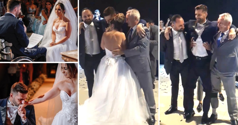 Емотивно: Парализиран младоженец со помош на брат му и татко му се исправи на нозе за свадбенот танц