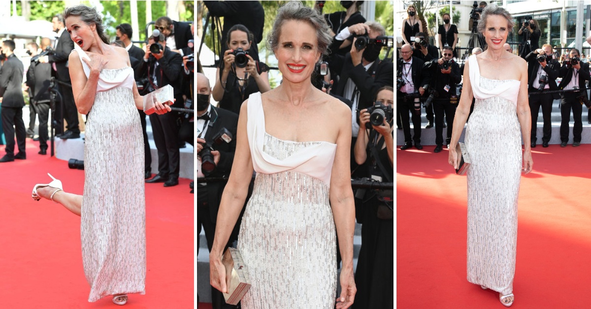 Енди Мекдауел гордо ја покажува својата природна седа коса.