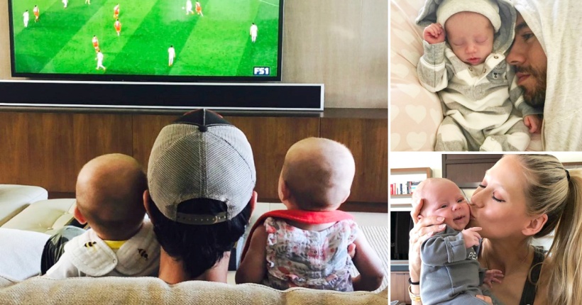 И двајцата имаат споделено фотографија на која позираат со по едно од бебињата.
