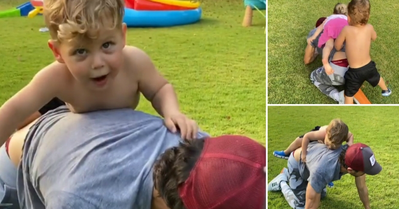 44-годишниот пејач сподели интересно видео од неговите лудории со двегодишните близнаци Николас и Луси во дворот додека се во домашна изолација.
