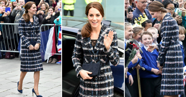 Кејт носеше палто од колекцијата ресорт 2016 на модниот бренд Ердем, кое го надополни со салонки од Руперт Сандерсон, обетки од Оскар де ла Рента и чанта од Л.К. Бенет.