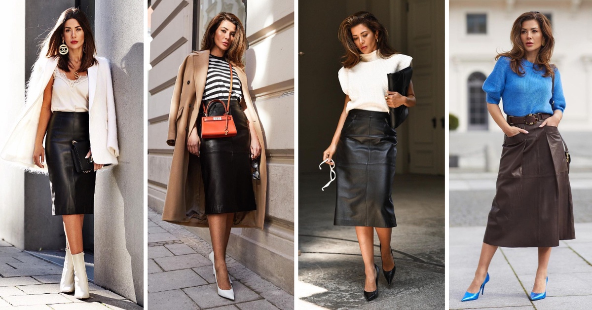 Коженото миди здолниште успешно може да се вклучи во деловните комбинации и да се постигне професионален изглед. Тоа ни го покажува германската блогерка Фисун Линднер.