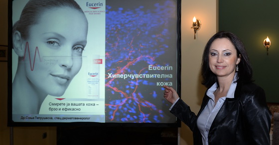 Пред поголем број на медиуми и доктори дерматолози презентација за правилната нега на чувствителната кожа одржa д-р Соња Петрушеска специјалист – дерматовенеролог и стручен соработник за Еуцерин. Таа истакна дека податоците од бројните истражувања покажуваат дека дури 50-70% од луѓето ширум светот имаат чувствителна или многу чувствителна кожа. Проблемите со кои се соочуваат се симптоми како пецкање или печење на кожата, јадеж, па сè до состојби како купероза и розацеа.