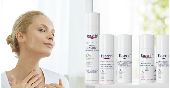 Колекцијата Eucerin UltraSENSITIVE ги смирува хипер-реактивните нерви на кожата, додека производот од оваа колекција Eucerin AntiREDNESS дополнително ја смирува и иритацијата. Се препорачува да се користи и лосион за чистење на лице кој ја отстранува шминката и нечистотијата без да ја суши и иритира кожата. Брзо се враќа балансот на кожата, и тоа на исклучително нежен начин, правејќи ја отпорна на стресот предизвикан од модерниот живот.