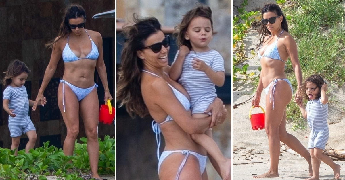Слободно може да се каже дека 46-годишната актерка изгледа одлично, а најновите папараци фотографии го докажуваат тоа. Ѕвездата од „Очајни домакинки“ носеше бикини од Мелиса Одабаш додека си играше и се грижеше за синчето Сантијаго на плажа во Кабо Сан Лукас, Мексико.