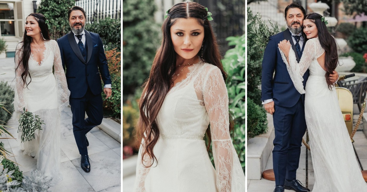 41-годишната телевизиска ѕвезда, која кај нас се прослави со улогата на Ферхунде во серијата „Кога лисјата паѓаат“, носеше венчаница со долги ракави и разголен грб.