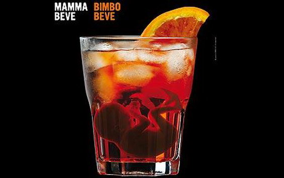 Новата кампања покажува фетус на дното на чаша алкохол, под коцки мраз и парче портокал. Пораката на рекламата е „Кога мајката пие и бебето пие“ (на италијански: „Mama beve, bimbo beve“).