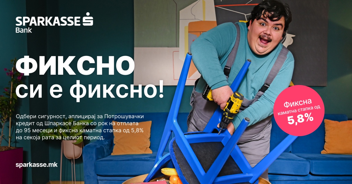 „Фиксно си е фиксно“ – станбен и потрошувачки кредит на Шпаркасе Банка со фиксна каматна стапка