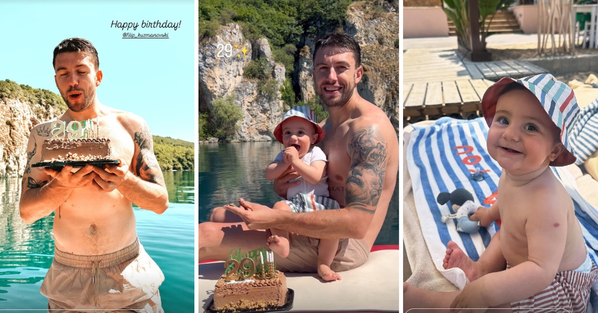 Капитенот на македонската ракометна репрезентација дувна свеќичка на роденденската торта додека во прегратка го држеше своето мало синче Матијан.