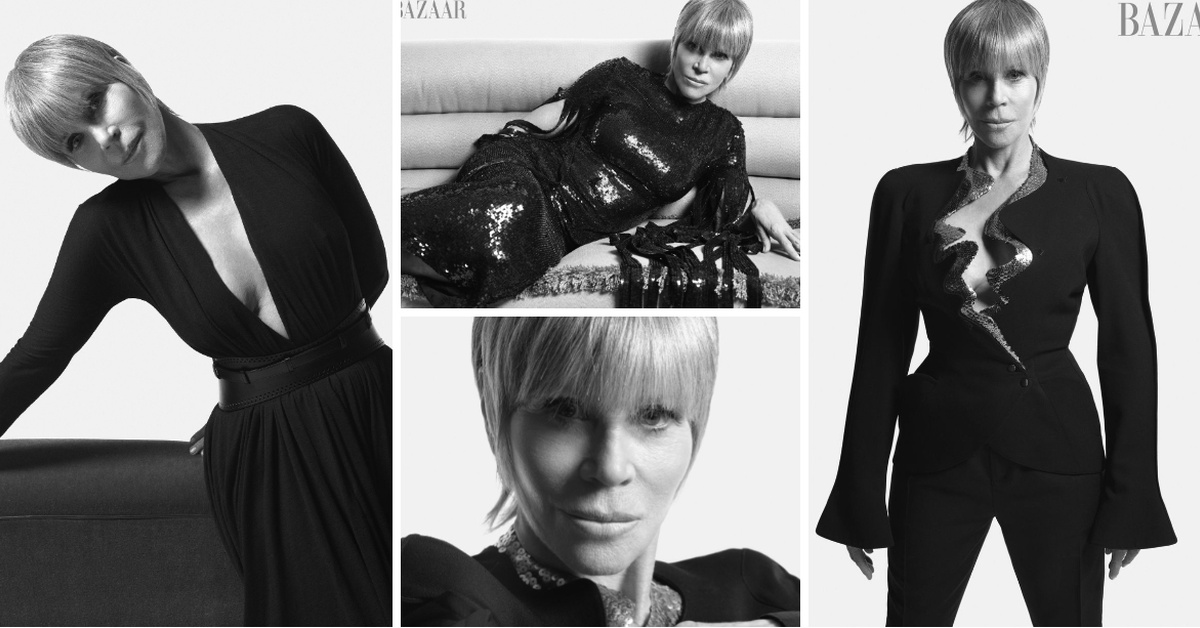 На црно-белите фотографии, филмската икона позира во креации од Ralph Lauren, Paco Rabanne, Alaïa, Valentino, Celine и Saint Laurent.