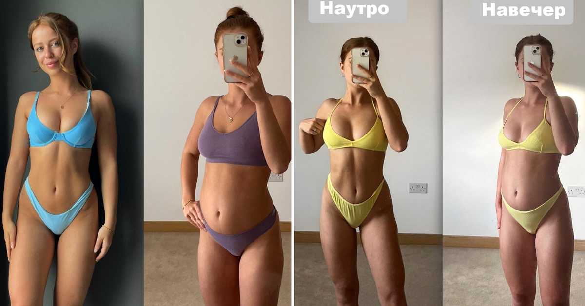„Да имаш подуен стомак не е изговор за да го третираш твоето тело на лош начин. Денес се разбудив подуена. Не јадев ништо поразлично вчера. Не ми е ‘тој период од месецот’. Искрено, не знам зошто се разбудив со поголем стомак, но ОК е. Во ред е да ти се менува изгледот на телото. Ничиј стомак не е рамен цело време, како што не е и мојот. И тоа дефинитивно не значи дека си го уништил целиот прогрес. Се додека не чувствуваш болка, подуеноста е нормална.“