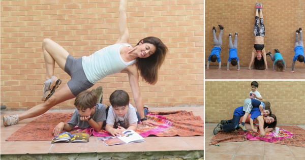 Мајка која вежба додека ги забавува децата покажува дека секогаш може да се најде простор и време за физичка активност.