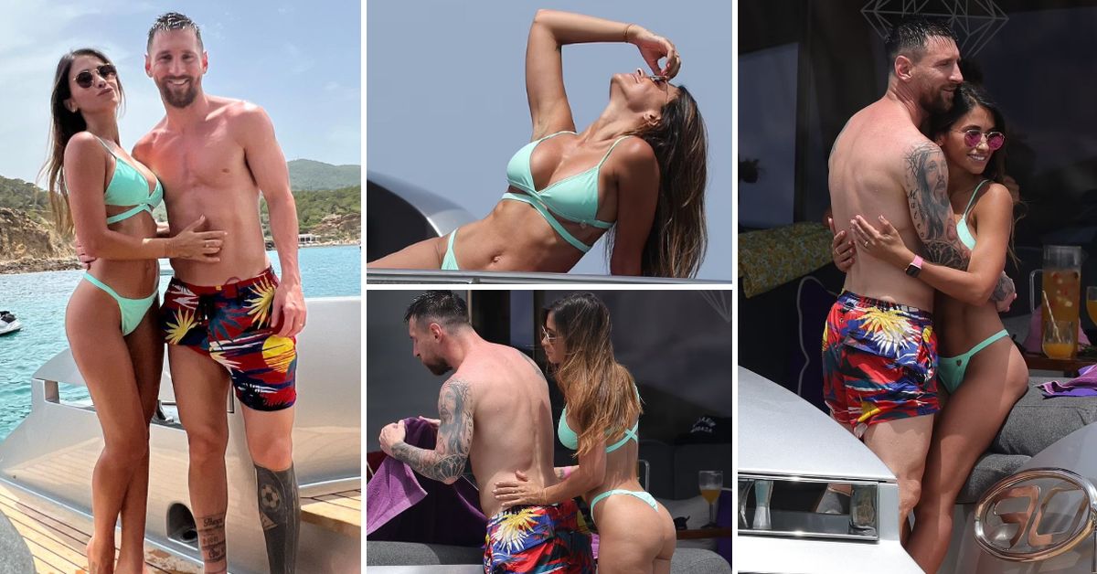 34-годишниот фудбалер беше фотографиран додека се забавуваше на луксузна јахта со саканата, која ја покажа згодната фигура.