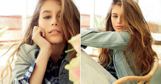 Каја Гербер самоуверено ги следи стапките на својата славна мајка. 13-годишната ќерка на Синди Крафорд позираше за „Teen Vogue“.