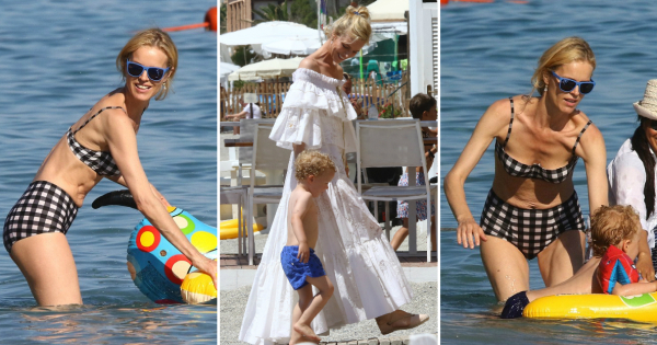 43-годишната чешка убавица, која во 90-тите години го одушеви светот со својот шарм и изглед, деновиве неколкупати беше фотографирана со своето трето дете во Вариготи, Италија. На дел од фотографиите, Херцигова носи бикини со висок струк, а на други таа е облечена во бело-син комбинезон.