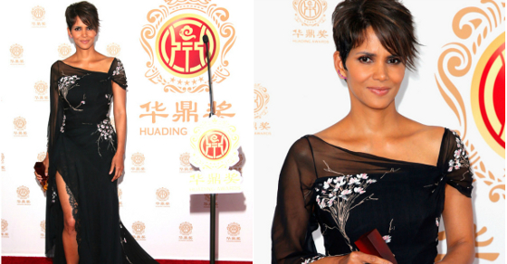 За манифестацијата по повод доделувањето на кинеските филмски награди, која за првпат се одржа во САД, Бери избра елегантна креација со висок шлиц од Ели Сааб.