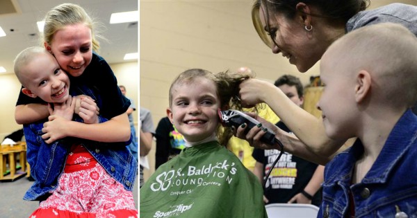Осумдесет деца си ги избричија главите во знак на поддршка на соученичка болна од рак, која по една година лекување, повторно се враќа во училишните клупи.
