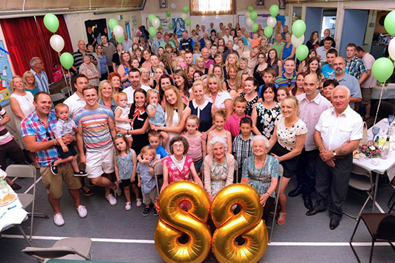 Британката Меј Шапел го прослави осумдесет и осмиот роденден со своето навистина големо „потесно“ семејство. Среќната старица направи забава на која присуствуваа нејзините 10 деца, 37 внуци, 56 правнуци и едно пра-правнуче.