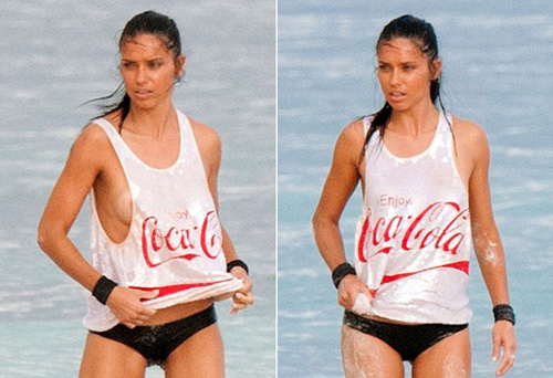 Адријана Лима не е срамежлив ангел. 32-годишната манекенка позираше провокативно во влажна и проѕирна маичка на плажа во Канкун, Мексико.