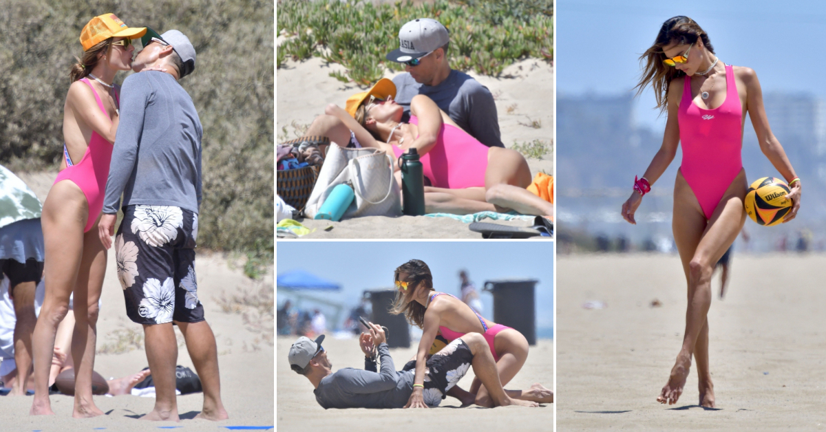 40-годишниот модел изгледаше атрактивно во костим за капење од Off-White додека играше одбојка и се бакнуваше со новото момче Ричард Ли на плажа во Санта Моника.