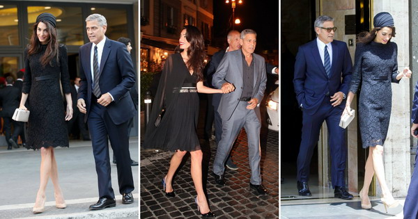 Успешната адвокатка и Џорџ Клуни беа фотографирани додека излегуваа од ресторанот „Dal Bolognese“ во Рим. 38-годишната правничка и активистка носеше црно фустанче со плисирана наметка и обувки од Џамбатиста Вали.