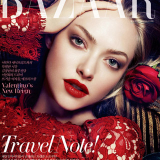 Аманда Сејфрид зрачи со сексапил во црвен чипкаст фустан на Долче и Габана за корицата на „Harper’s Bazaar“ Кореја.