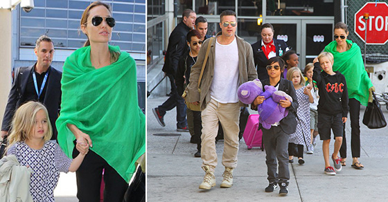 Џоли и Пит беа фотографирани заедно со нивните шест деца по пристигнувањето на аеродромот во Лос Анџелес.