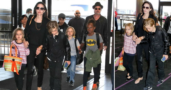 Анџелина Џоли и Бред Пит не поминуваат незабележани од будното око на папараците. Холивудскиот пар беше фотографиран на аеродром во Лос Анџелес заедно со шесте деца.