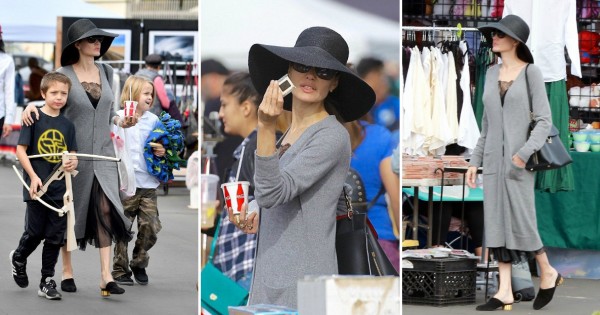 Анџелина Џоли со три од своите деца посети болвин пазар во Пасадена, Калифорнија.