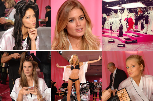 Додека ангелите ги прават последните подготовки пред жешката ревија, љубопитните фоторепортери ѕиркаат зад завесата зад која се крие и армија неуморни шминкери и фризери.
