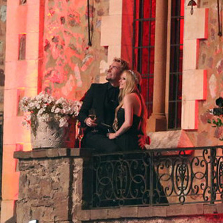 На првите фотографии од свадбата, Чед и Аврил гледаат огномет додека наздравуваат со шампањ.