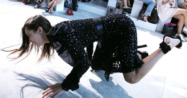 Славниот модел самостојно се исправи на нозе и продолжи да дефилира. Гостите наместо да ѝ помогнат да се исправи, тие само продолжија да ја фотографираат.