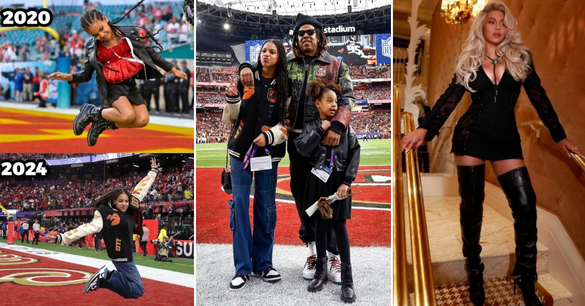 42-годишната пејачка и 54-годишниот рапер со Блу Ајви и Руми се забавуваа на популарниот спортски натпревар во американски фудбал. Славниот музички пар беше „уловен“ од камерите додека го следеше настанот, а подоцна Џеј Зи беше фотографиран на теренот со 12-годишната Блу Ајви и 6-годишната Руми.