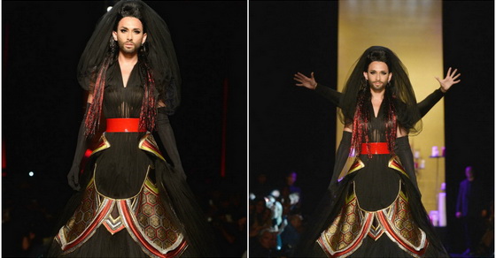Кончита Вурст ги живее своите „пет минути“. По победата на Евровизија, музичката ѕвезда стигна и до високата мода. Вурст ја затвори ревијата на Жан Пол Готје во Париз.