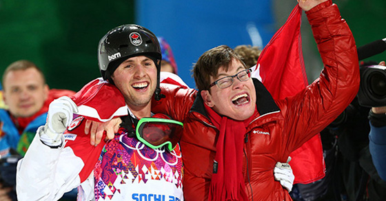 Откако го освои второто олимписко злато во слободно скијање, среќниот Канаѓанец веднаш го побара својот брат, го прегрна и повлече кон себе за заедно да го прослават големиот успех.