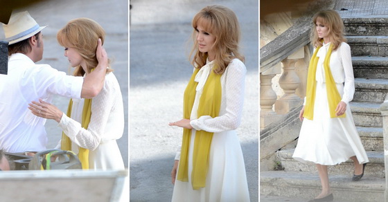 39-годишната филмска ѕвезда носеше руса перика за време на снимањето на една од емотивните сцени од филмот. Во „By The Sea“ Џоли глуми поранешна танчарка со име Ванеса, додека Пит влегува во улогата на американски писател. Дејството се одвива во