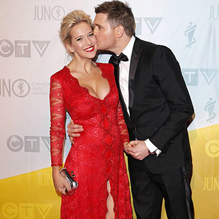 Опсипена со љубов од нејзиниот сопруг Мајкл Бубле, 25-годишната Аргентинка со насмевка на лицето го покажа трудничкото стомаче.