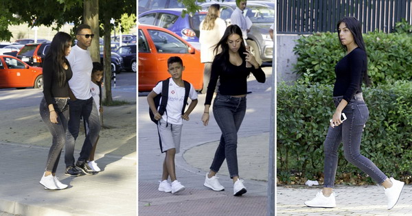 22-годината трудница, која наскоро ќе го роди нејзиното прво дете со славниот фудбалер, беше фотографирана додека го испраќаше на училиште 7-годишниот Кристијано Џуниор.