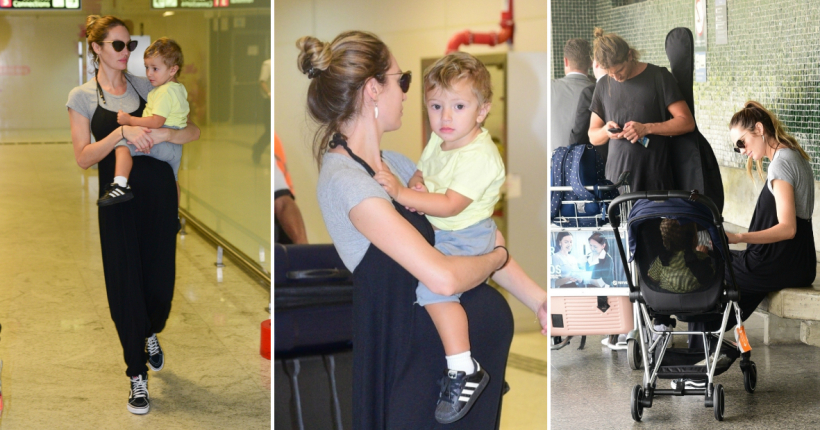 29-годишната манекенка беше фотографирана на аеродром во Сао Паоло, Бразил, заедно со синчето Анака и свршеникот Херман Николи. На најголем дел од фотографиите, атрактивниот модел на Victoria’s Secret го носи малиот Анака в раце.