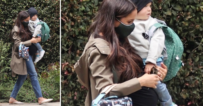39-годишната Војвотка беше фотографирана со малиот син Арчи во Калифорнија, само еден ден откако принцот Хари се врати во САД по погребот на принцот Филип.