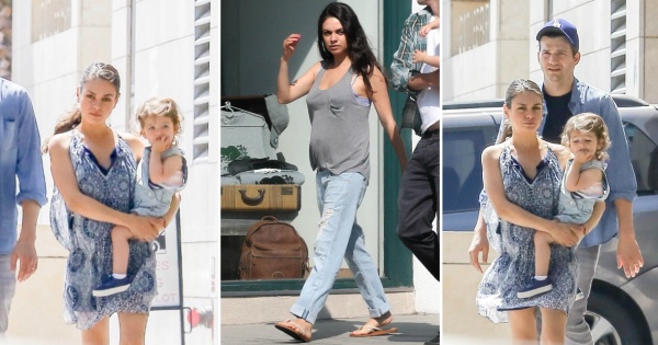 Трудничкото стомаче на Мила Кунис расте. Холивудската ѕвезда, која е бремена со второто дете, деновиве беше фотографирана со саканиот Ештон Кучер и малечката ќерка на прошетки во Беверли Хилс.