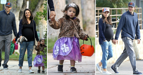 33-годишната актерка беше фотографирана со сопругот Ештон Кучер и ќеркичката Вајат Изабел. За Халовин, 2-годишното девојче беше маскирано во принцезата Софија од анимираната ТВ серија „Sofia the First“.
