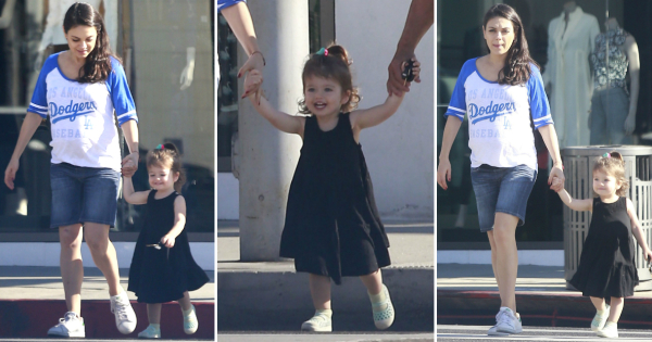 Мила Кунис беше фотографирана на прошетка со својот татко и ќеркичката Вајат Изабел, која следниот месец ќе наполни две години.