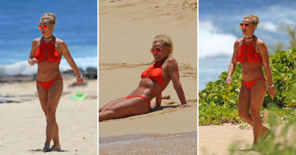 34-годишната пејачка беше фотографирана додека се релаксираше и забавуваше на плажа. Спирс го покажа своето тело во црвени бикини, а својот изглед го надополни со огледални авијаторки.